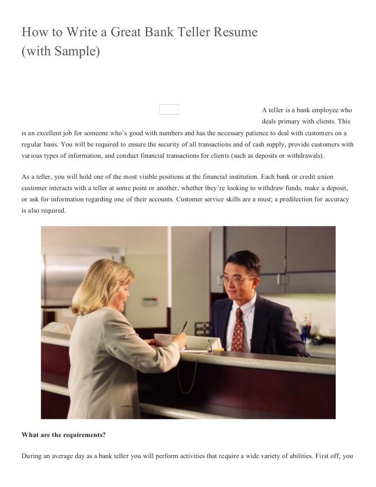 Nearly nine out of 10 people that enter a bank or financial institution are going because they have a transaction they would like handled in the. Talk about any experience you have that applies to the job. And depending on the audience, some stories will be.