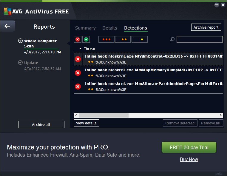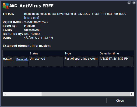 How to get rid of ntoskrnl-hook. I've been surching the internet for a solution. I also ran maleware bot and it does not locate this. Threats include any threat of suicide, violence, or harm to another.